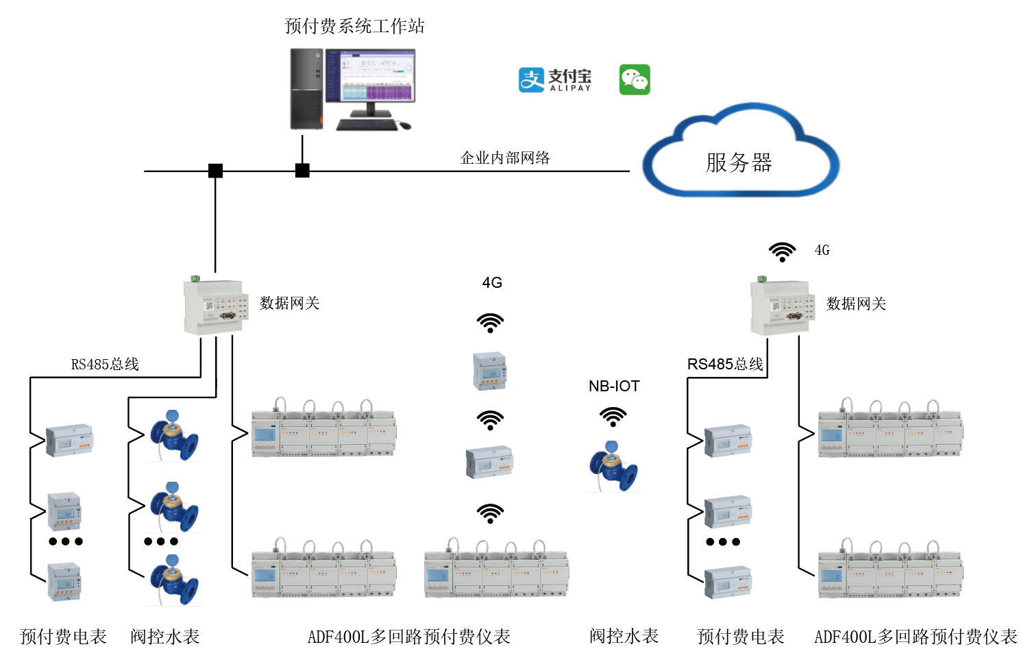 適用于居民區、商業廣場、學校、公寓等采用預付費用電模式,電表集中安裝,用戶不直接接觸電表的場合。