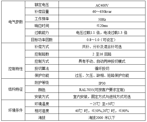 適用于頻率50Hz電壓0.4kV電網(wǎng)的無(wú)功功率自動(dòng)補(bǔ)償。