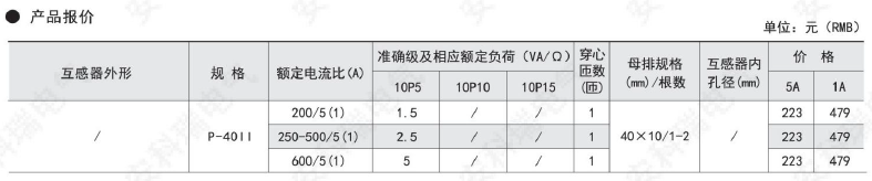 技術要求:額定電流比600A/5A;準確級10P10級;額定負荷5VA;穿心匝數1匝;穿排規格60mm×10mm 1-2根。