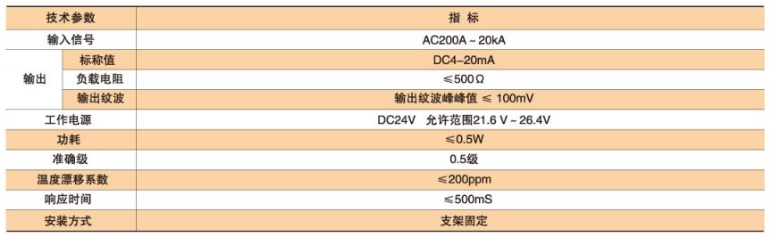 技術要求:輸入電流AC1000A;輸出DC4-20mA;準確級0.5;長度350mm。