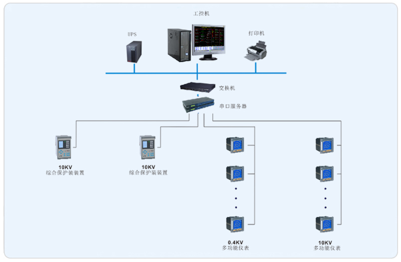 1.實現(xiàn)了各類用電設(shè)備的一次系統(tǒng)圖顯示、各回路實時電參量遙測、遙信,重要回路電能報表、直觀地顯示低壓系統(tǒng)各回路的運行狀況。