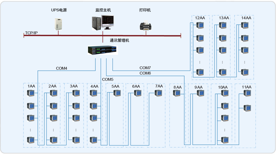1.對系統所采集的實時數據進行統計、分析及計算,并將數據定時存儲。 2.電能匯總表,所有監控設備電能匯總,按時間段查詢,自動計算任意時段用電量。 3.負荷趨勢曲線提供了某一段時間內該回路的負荷趨勢,方便管理員掌握用電設備的運行狀況。 4.告警的提示和通知模塊可以將日常監控系統管理模塊統計的異常數據進行分類整理,對超出標桿電量一定范圍的數據,通過硬件的支持發出聲光、短信、工單等形式的告警。