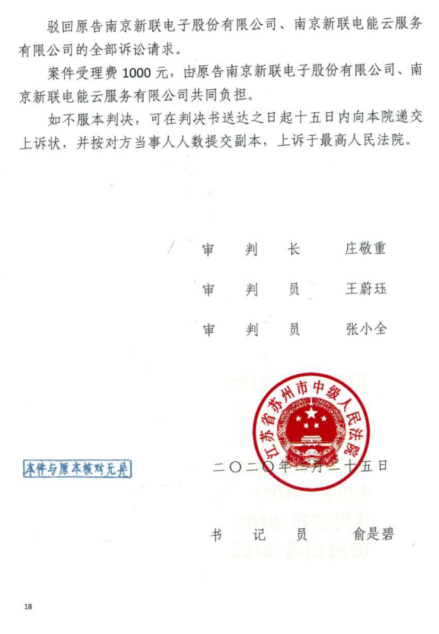 近日安科瑞收到江蘇省蘇州市中級(jí)人民法院(以下簡(jiǎn)稱“蘇州中院”)的《民事判決書》((2018)蘇 05 民初 1000 號(hào)),就原告南京新聯(lián)電子股份有限公司、南京新聯(lián)電能云服務(wù)有限公司(以下簡(jiǎn)稱“新聯(lián)公司”)與被告安科瑞電氣股份有限公司、江蘇安科瑞電器制造有限公司(以下簡(jiǎn)稱“安科瑞”)侵害發(fā)明專利權(quán)糾紛一案作出判決。