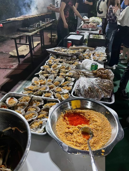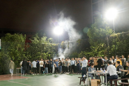 漫步籃球場,夜幕已經(jīng)降臨,氣氛逐漸活躍。大家的熱情如同滾燙的爐火,沖散了寒露時(shí)節(jié)的絲絲涼意。籃球場圍滿了觀眾,燒烤攤邊炊煙裊裊,餐桌上擺滿了飲料啤酒,今晚是狂歡盛宴!甩開平日里的拘束,此刻,只有朋友、燒烤、酒、音樂!