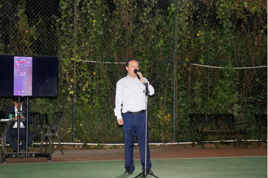 選手們賣力演出,領(lǐng)導(dǎo)們也積極獻(xiàn)唱,場面氛圍一度爆棚。