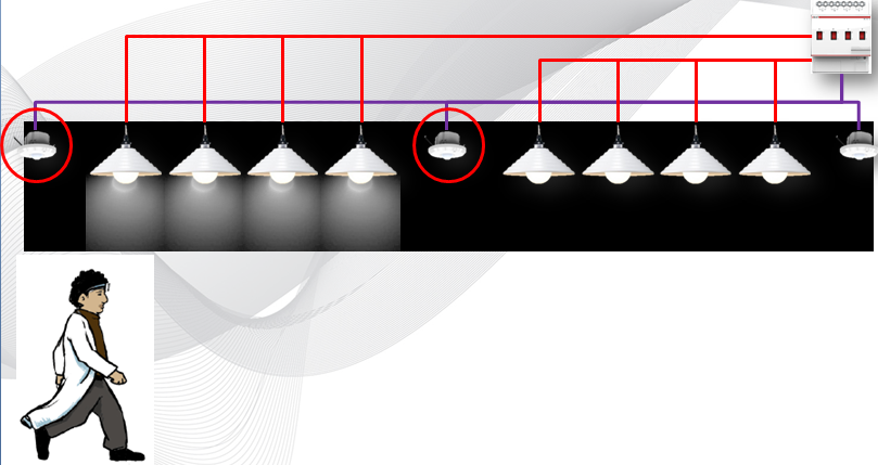 在通道、走廊、公共區(qū)域、樓梯間、會(huì)議室等場(chǎng)所布置人體感應(yīng)傳感器,當(dāng)人員進(jìn)入?yún)^(qū)域時(shí),自動(dòng)打開(kāi)照明;當(dāng)人員離開(kāi)后,延遲一段時(shí)間再關(guān)閉,根據(jù)需求設(shè)定。