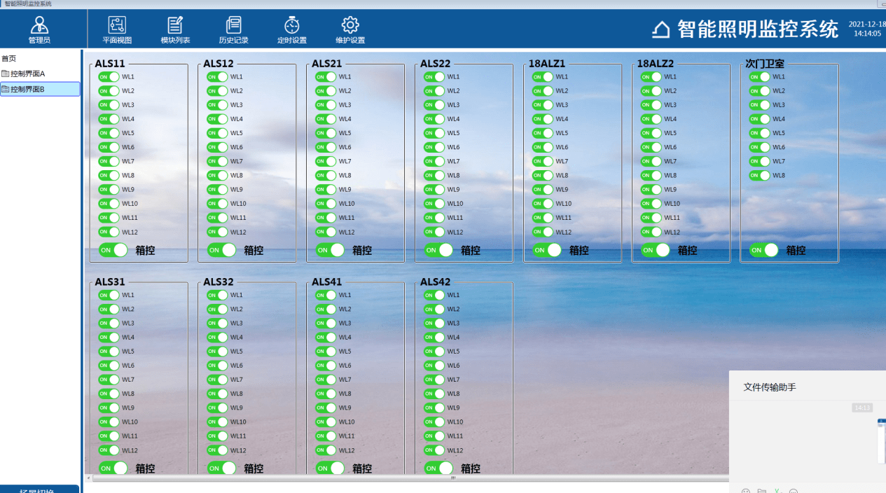 可以通過(guò)電腦或者觸控終端控制一棟樓、某一層或某個(gè)區(qū)域所有照明燈具開(kāi)關(guān)??梢詫?duì)單個(gè)照明回路實(shí)現(xiàn)開(kāi)關(guān)控制,還可對(duì)每個(gè)模塊、箱子、樓層、自定義分區(qū)實(shí)現(xiàn)總控?,F(xiàn)場(chǎng)受控回路的開(kāi)關(guān)狀態(tài)會(huì)實(shí)時(shí)反饋。