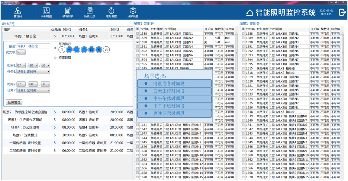 智能照明控制系統(tǒng)通過(guò)時(shí)鐘管理器,實(shí)現(xiàn)有關(guān)區(qū)域照明的定時(shí)和自動(dòng)管理功能,實(shí)現(xiàn)走廊、公共通道、景觀照明、泛光照明、車(chē)庫(kù)照明定時(shí)控制。如百葉窗定時(shí)升降、集中供熱定時(shí)調(diào)節(jié)、節(jié)假日照明定時(shí)關(guān)閉、定時(shí)通知等。